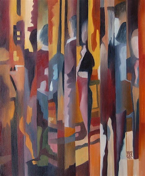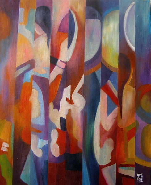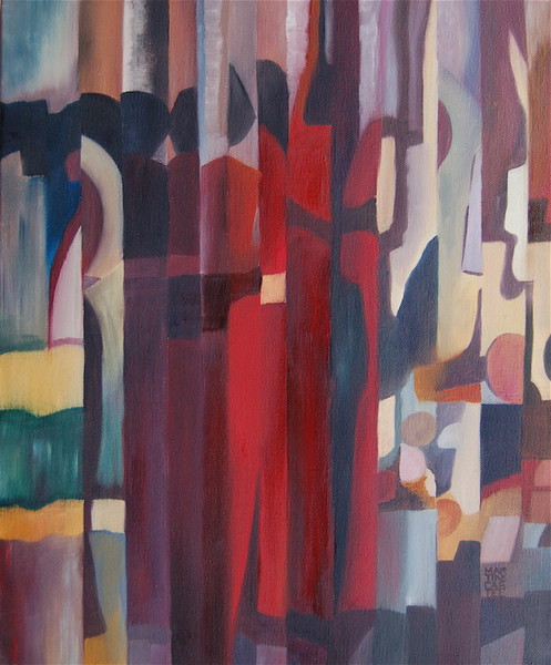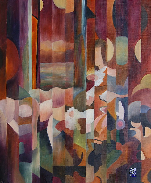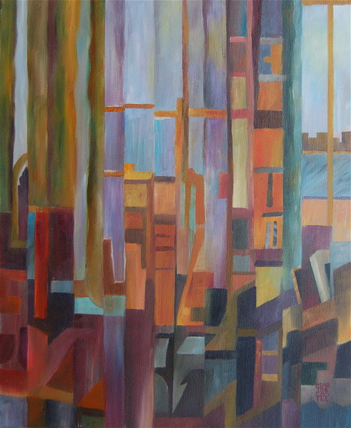 Ou comme dans mon cas, dans le tableau la ligne droite en se brisant, se pliant, s'inclinant trouble le bon fonctionnement des prétendus rayons lumineux et provoque ainsi un remue-ménage dans la distribution, la modulation, l'accent et l'intonation des couleurs.